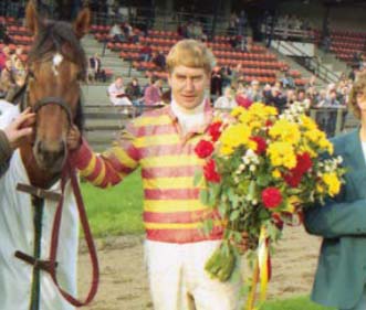 Dit is Paranoia, die hier met Danny Brouwer gemakkelijk de Merrie-Derby der 3-jarigen wint.