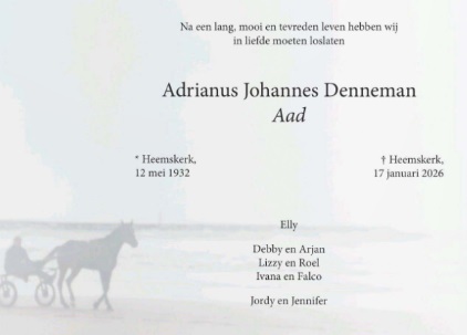 Op 17 januari 2026 overleed Aad Denneman, 93 jaren oud. Hij begon in zijn geboorteplaats Heemskerk als zogenaamde "koude bakker", iemand die brood verkocht dat hij zelf niet had gebakken. Later ging hij......