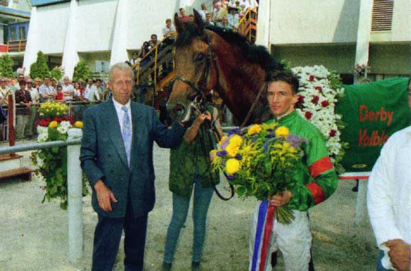 Boven: Derby-1996-winnaar Laiandros en Adrie de Vries poseren in Sevenum.