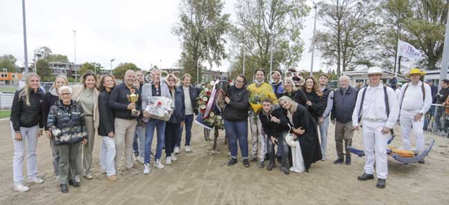 de winnende eigenaar Robin Goudsblom bij de huldiging.