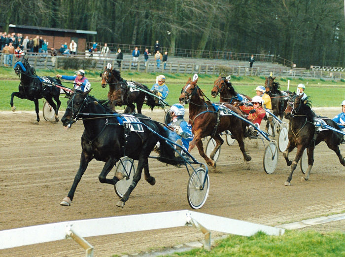 Boven: Paul Trot (1e) leidt reeds in het Gouden Paard 1995,