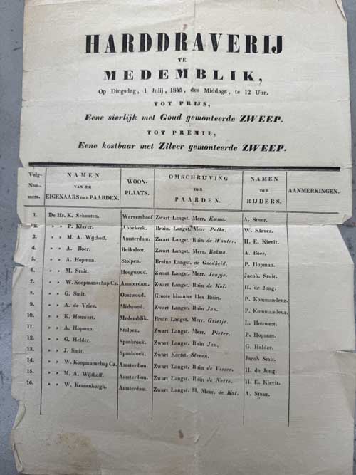 Hieronder de Affice van de Kortebaan te Medemblik in 1845